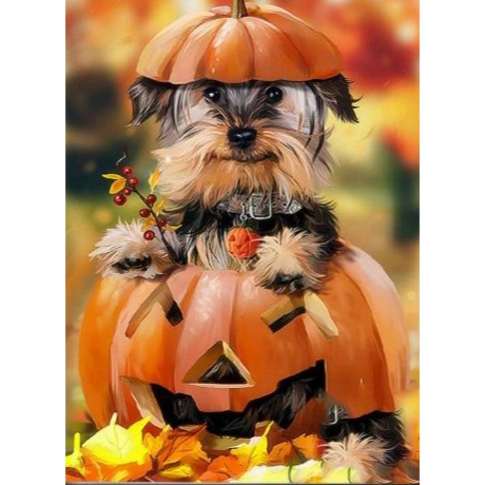 Puppy inside halloween pumpkin